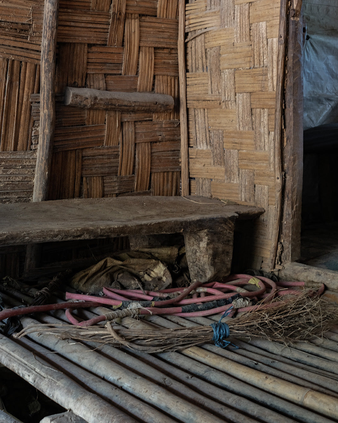 Anciens lits entreposés dans le morung, désormais inutilisé