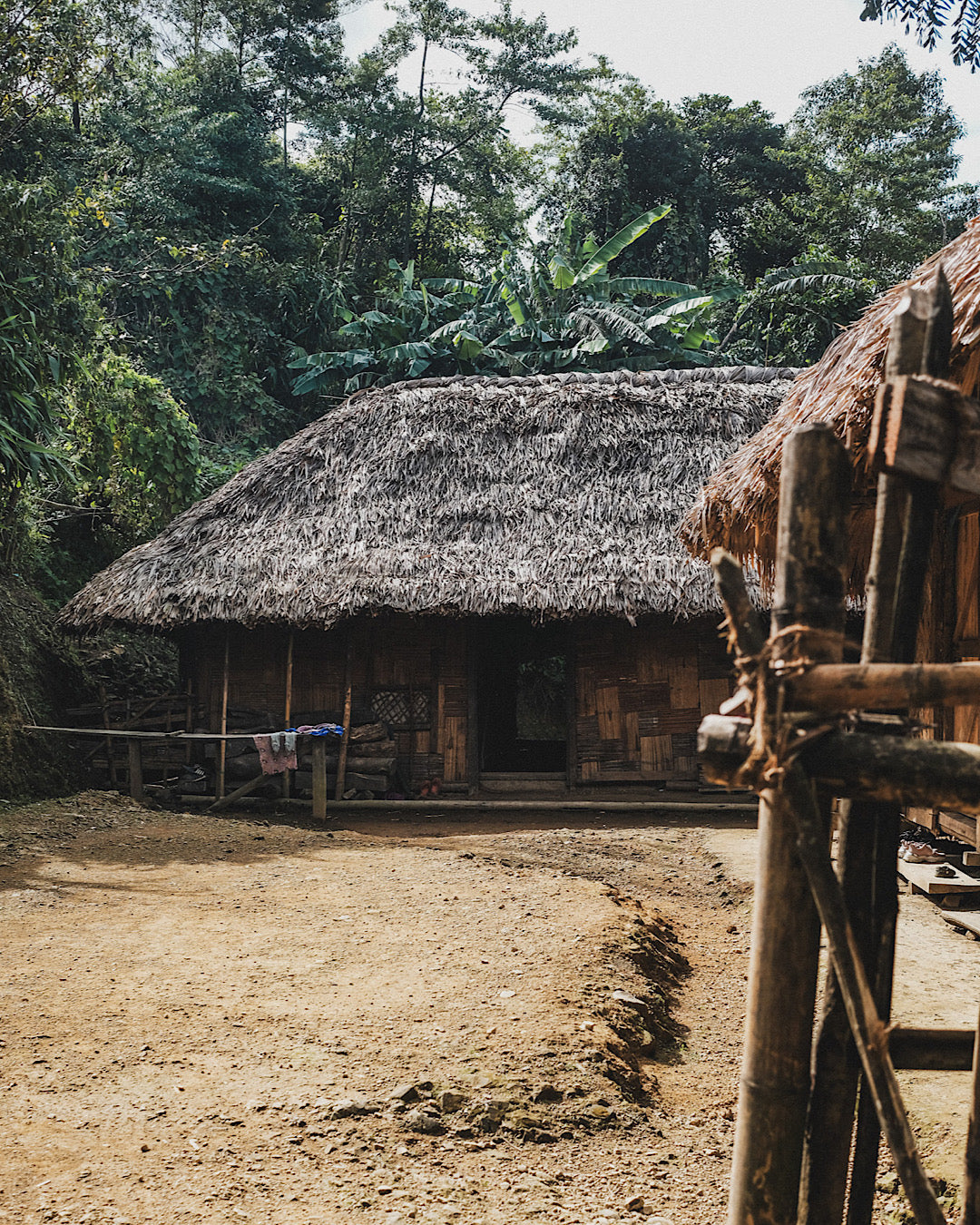 Après avoir échangé quelques minutes, le guerrier prend congé et retourne dans sa maison faite de bambou et de palmes. Nous reprenons la voiture.