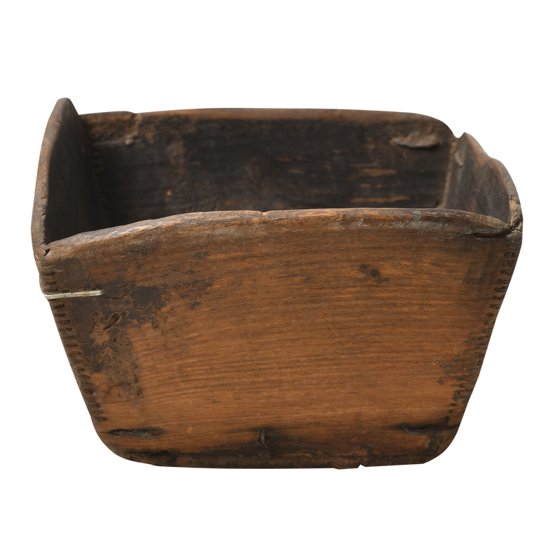 Ce panier carré chinois en pin de pin ancien, était autrefois utilisé pour transporter de petites quantités d’aliments ou d’ingrédients sur les marchés traditionnels. Sa fabrication artisanale, ses joints visibles et sa patine naturelle lui confèrent un charme brut, idéal pour une décoration inspirée du wabi-sabi ou du style campagne chic.
