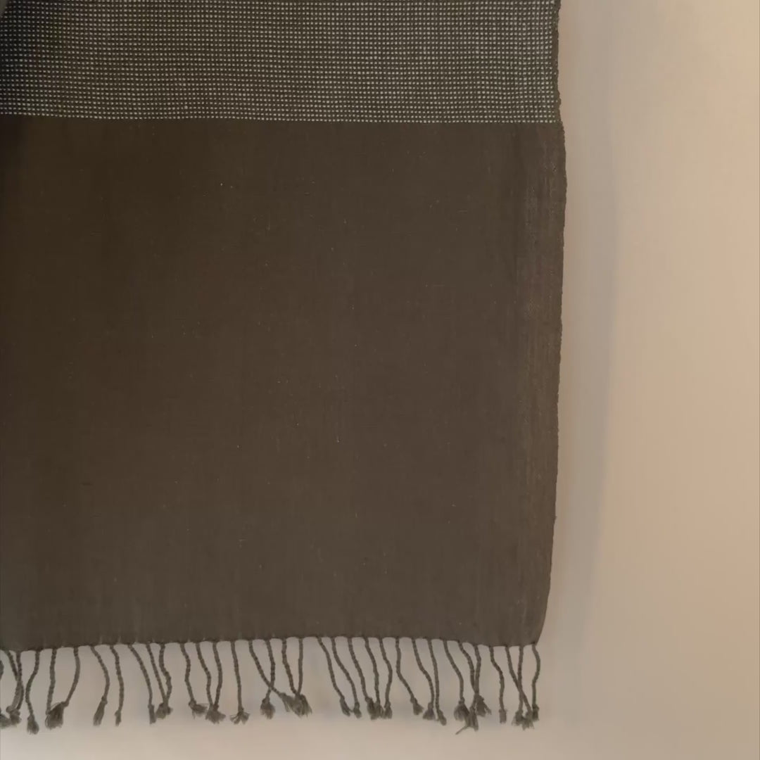 Plaid en coton, entièrement tissé à la main sur un métier à tisser traditionnel dans la région de Bhuj, au Gujarat (Inde). Ce savoir-faire ancestral se reflète dans chaque détail de ce textile, de la texture dense et robuste du coton à la richesse de ses motifs géométriques traditionnels.