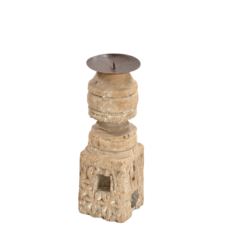 Momabatti - Bougeoir indien en bois clair sculpté nº151
