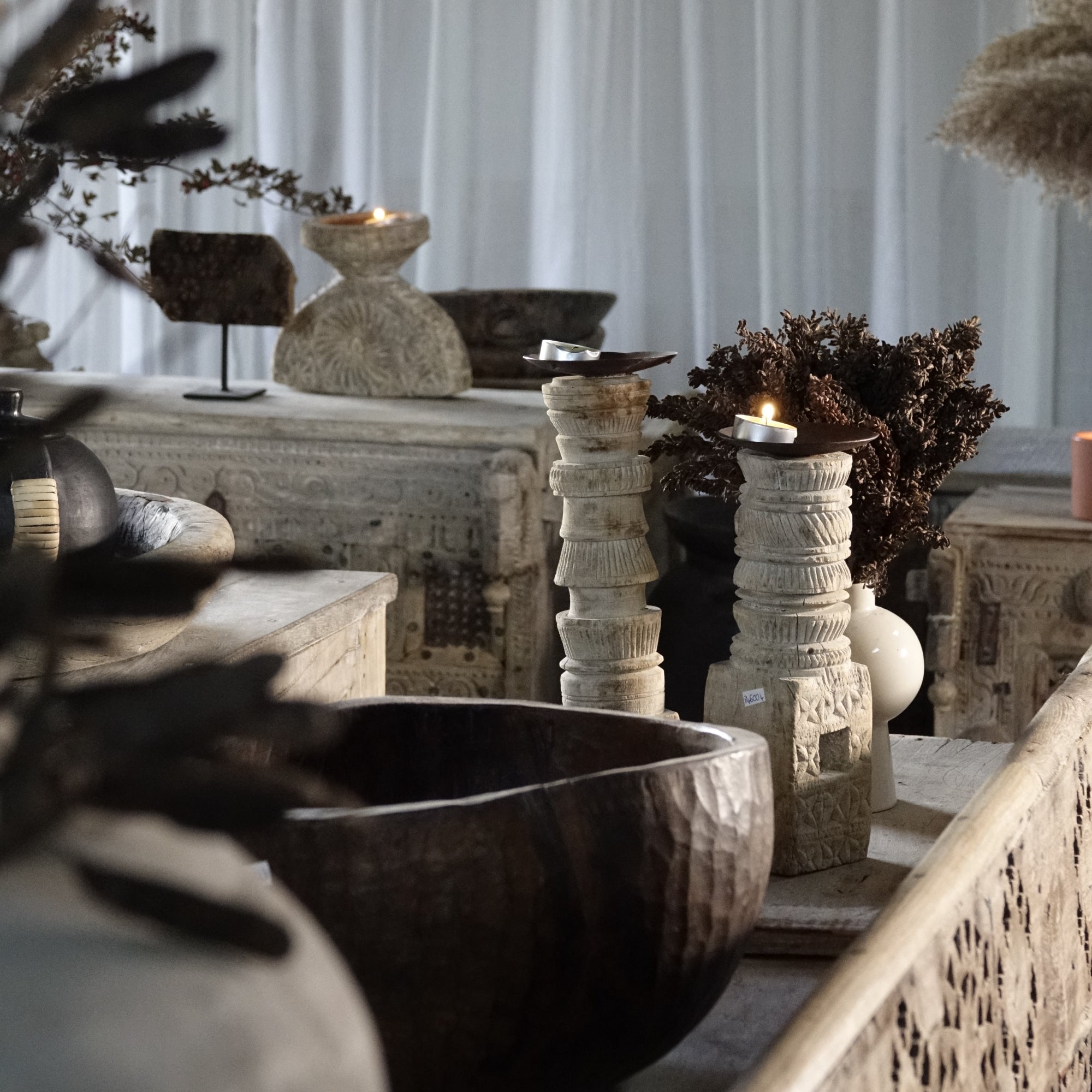 Passionnés par l'exploration, nos terrains de chasse de prédilection se situent hors des sentiers battus : sous-sols poussiéreux, vieux entrepôts ou encore antiquaires locaux. Nous nous spécialisons dans les pièces indiennes et turques, et aimons raconter l'histoire de ces objets. Plusieurs fois par an, nous explorons ces pays dans le but de d'apprendre et de documenter les usages de chaque pièce. Nous pensons qu'un intérieur s'enrichit par les objets et meubles qu'il abrite ; et qu'une pièce unique à la vieille âme a d'autant plus de valeur qu'il porte les marques de son vécu.