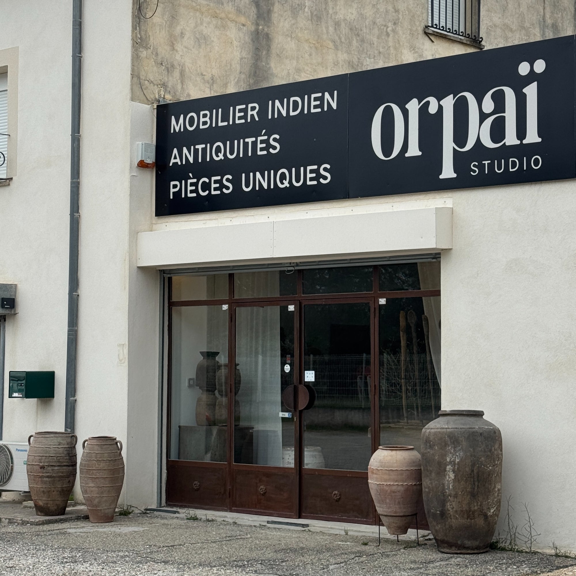 Nous sommes Alicia et Ankush, les fondateurs d'Orpaï. Ensemble, nous avons fondé Orpaï en 2021, un projet qui incarne notre vision commune : proposer une sélection pointue de meubles et objets authentiques, où chaque pièce raconte une histoire. Orpaï, c'est aussi notre histoire à nous : la rencontre entre l'Inde et la France. Aujourd’hui, nous parcourons le monde à la recherche des plus belles trouvailles, sélectionnant avec soin chaque meuble, chaque jarre, chaque objet pour donner vie à des intérieurs singuliers et empreints d’âme.
