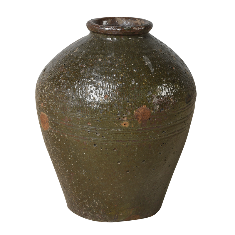 Conçue à l’origine pour le stockage du vin de riz, elle trouve aujourd’hui une place parfaite dans les intérieurs aux accents rustiques, bohèmes ou wabi-sabi. Chaque pot est unique, avec des traces d’usage, des coulures d’émail et une patine naturelle qui racontent son histoire.