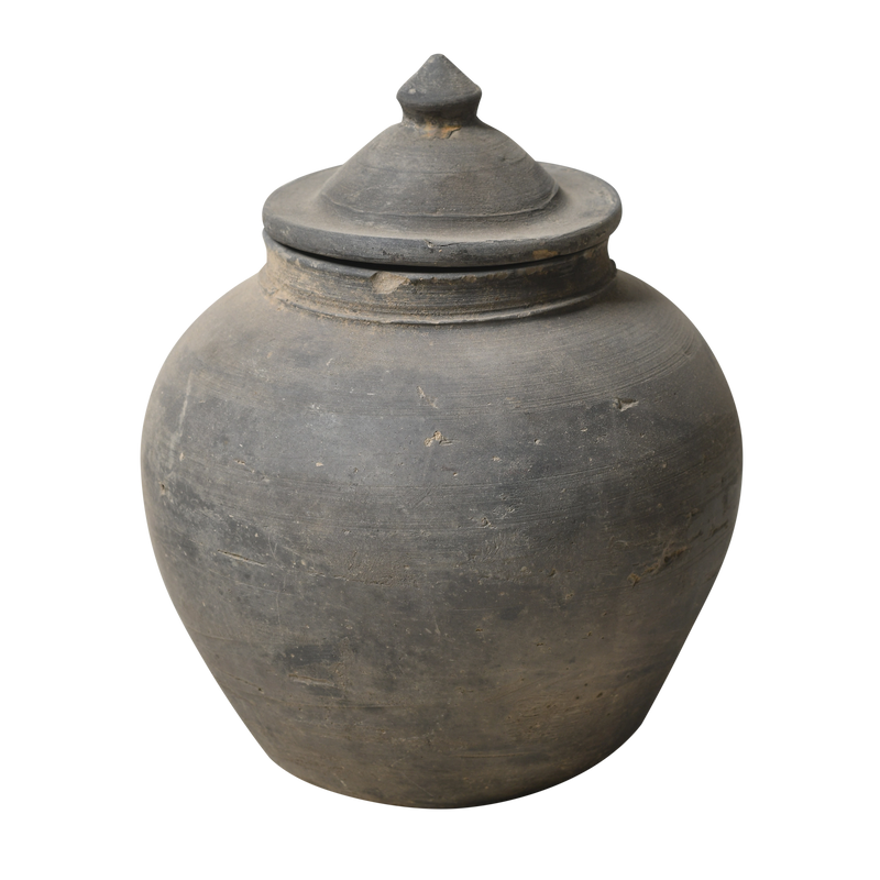 Yuxi - Pot utilitaire chinois gris à couvercle n°19