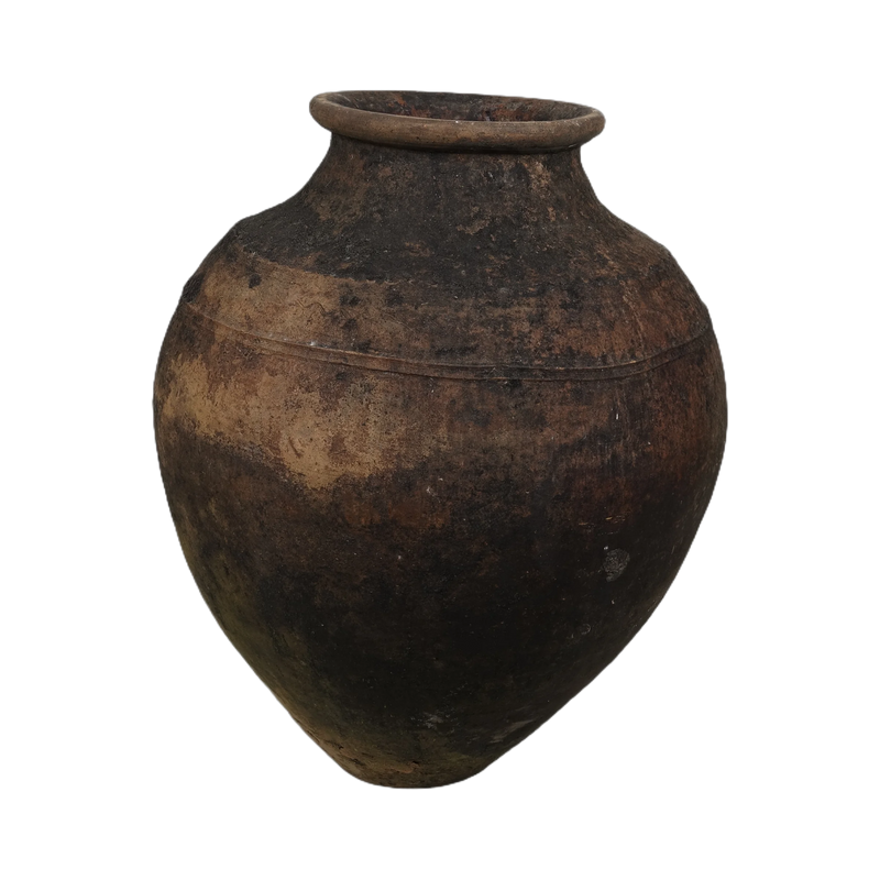 La surface présente une patine authentique, avec des variations naturelles liées au temps, à l’usage et à la cuisson au feu de bois. Elles constituent aujourd’hui un élément décoratif fort, adapté aux intérieurs naturels, wabi-sabi, campagne chic ou méditerranéens, ainsi qu’à un usage en intérieur comme en extérieur.