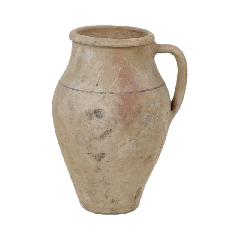 Ancienne poterie turque. Autrefois utilisée pour stocker de l'eau, du lait ou du vin, utilisez-la chez vous avec des fleurs séchées ou une branche pour un intérieur wabi-sabi.