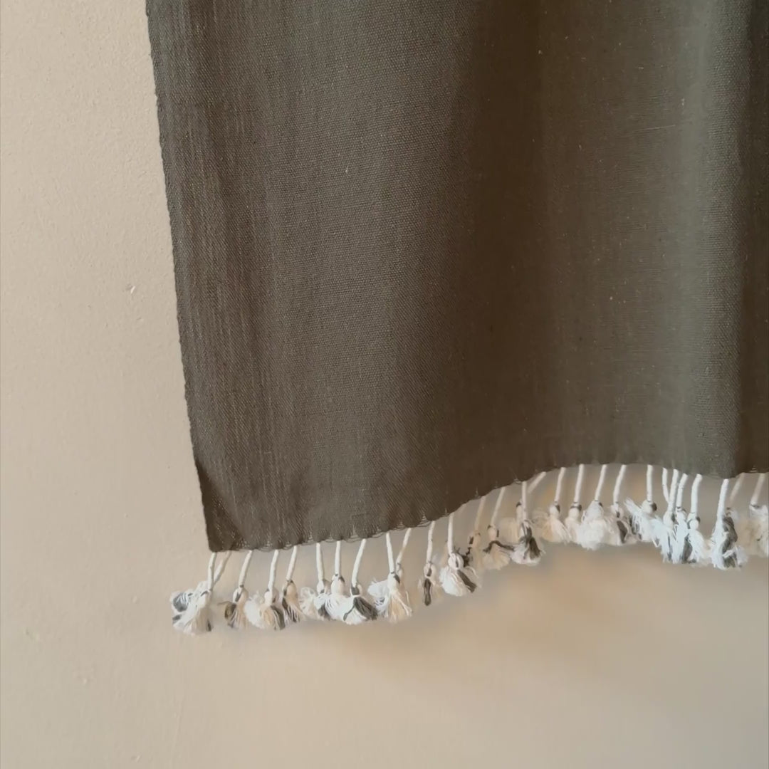 Les motifs délicats et les finitions à pompons sont typiques de la culture textile de Bhuj. Chaque élément est minutieusement travaillé, faisant de ce textile une pièce unique, à la fois décorative et fonctionnelle. Vous pourrez également l'utiliser chez vous comme plaid sur un canapé ou un fauteuil, sur une table comme nappe, ou même sur vous comme une grande étole à draper.