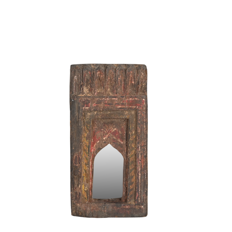 Pièce uniqueAuthentique fenêtre miniature de temple, agrémentée d'un miroir. Cette fenêtre fait état d'un mélange d'architecture islamique et hindoue. Pièce ancienne.