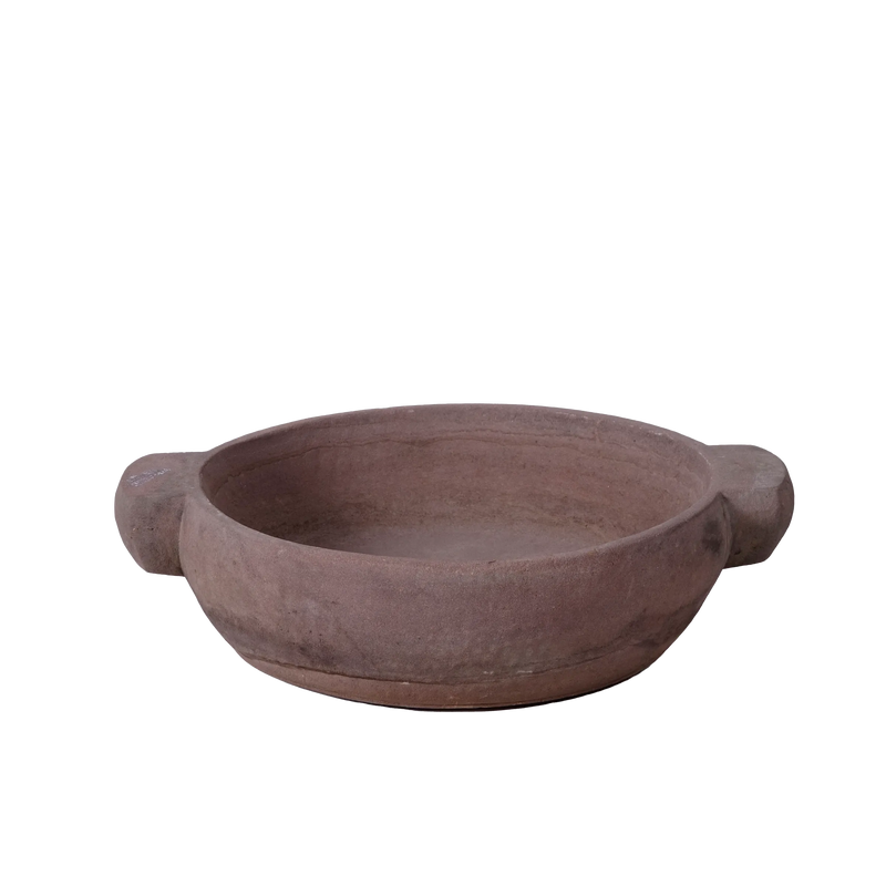 Pièce uniqueCe pot ancien en pierre, appelé kundi en Inde, servait autrefois à conserver l’eau dans les maisons et les cours des villages. Sculpté à la main dans du grès rouge, une des pierres traditionnelles du Rajasthan, ce pot a une forme circulaire et des parois épaisses qui permettaient de conserver son contenu au frais. Deux poignées taillées dans la masse permettaient de porter le pot en sécurité lorsque celui-ci était plein.