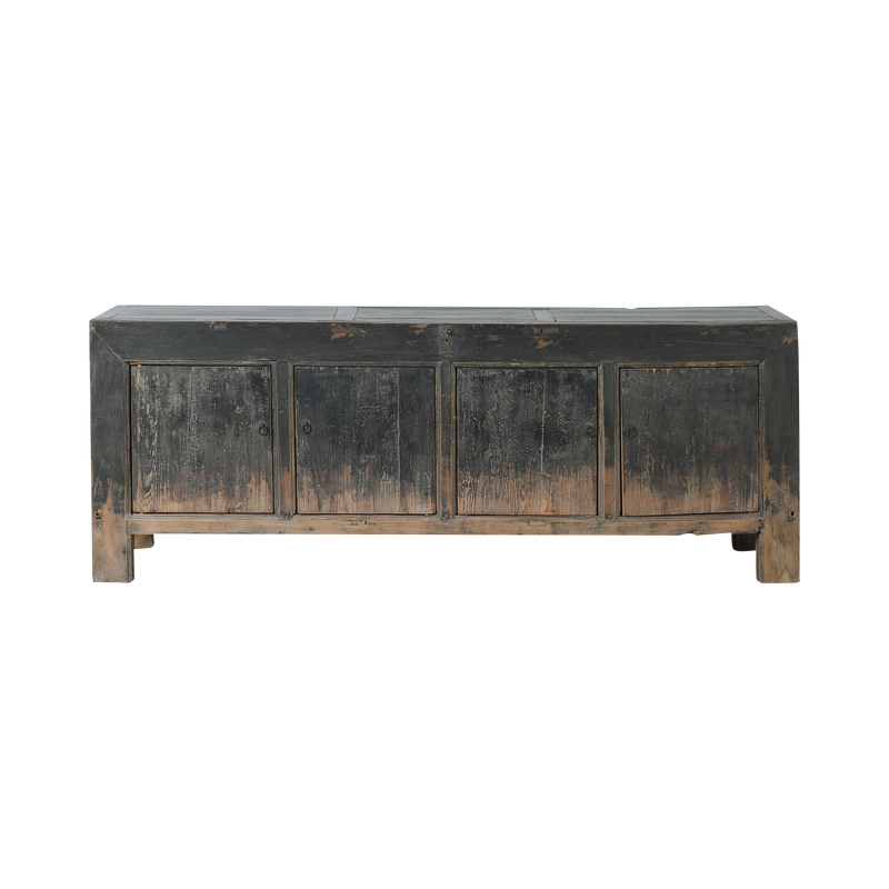 Ce buffet chinois ancien est une pièce unique, réalisée à partir d’une structure d’époque en orme massif. À l'origine, ces grands coffres servaient de stockage pour le riz et s'ouvraient par le haut grâce à une ou plusieurs trappes, aujourd'hui scellées.