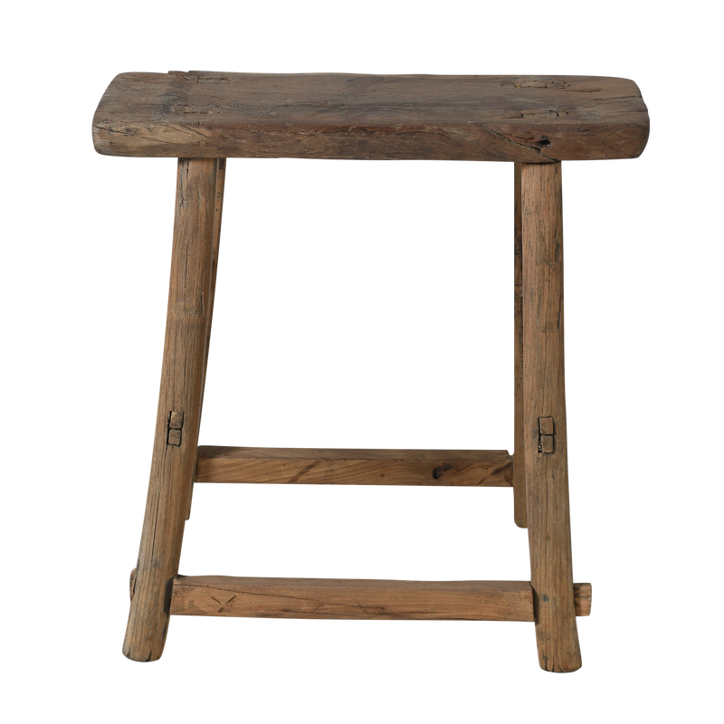 Zin - Tabouret rectangulaire en orme ancien n°1